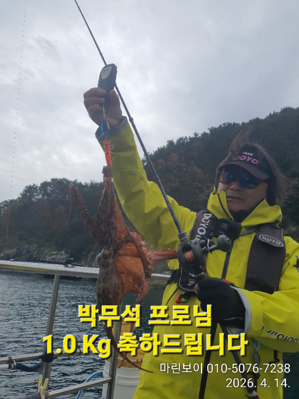| 제목 : 삼천포 마린보이 4. 14. 화요일 원도권 문어 뜯고 왔습니다. | ||